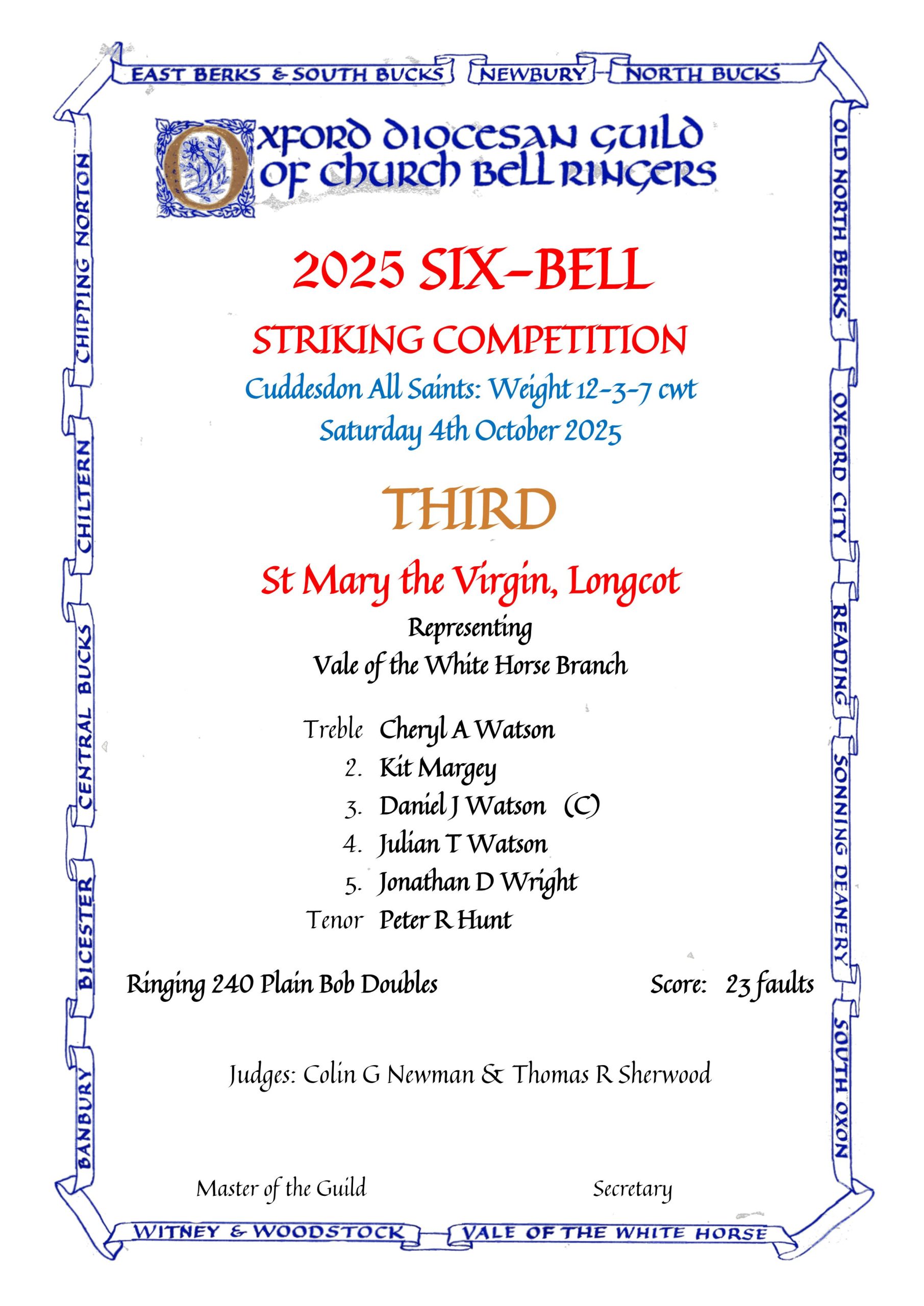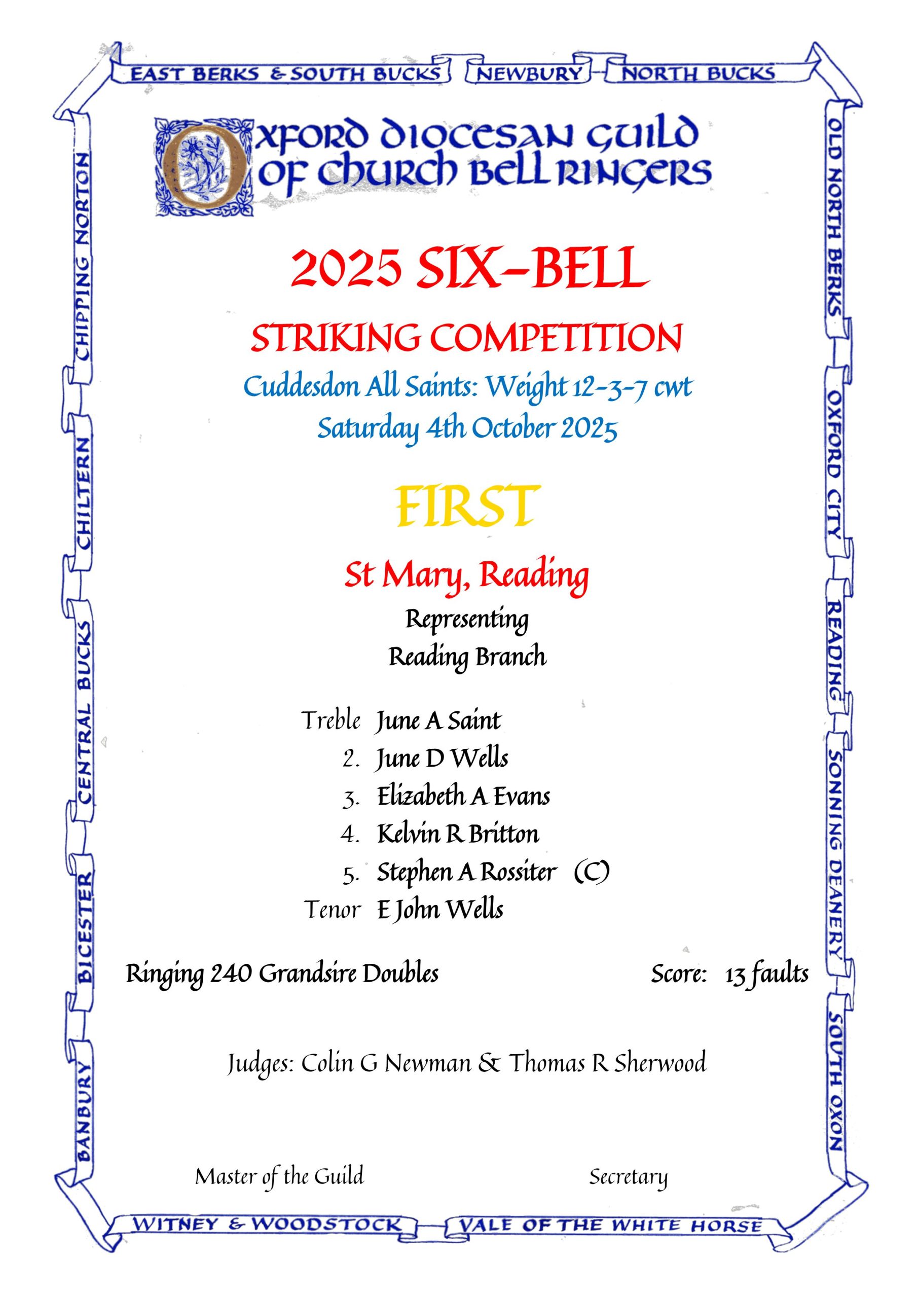 OXFORD DIOCESAN GUILD SIX-BELL COMPETITION 2022
