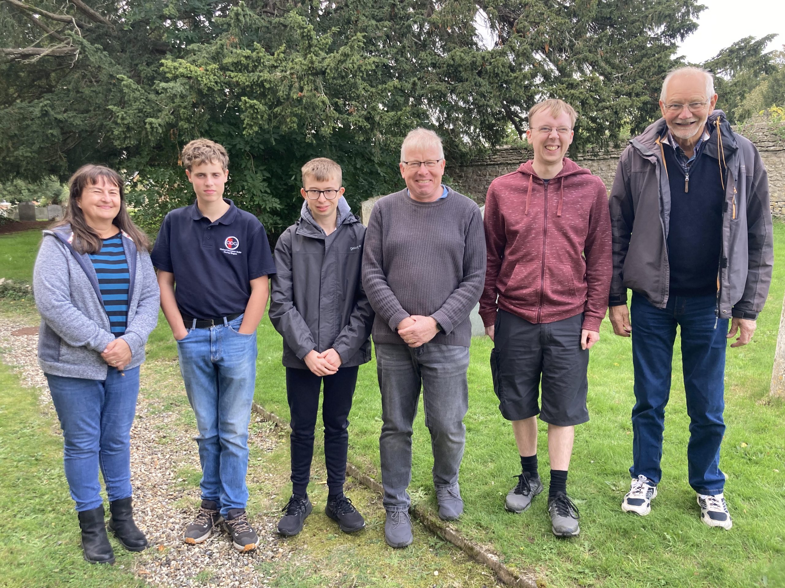 The judges were Simon and Becca Ridley who, given the excellent weather, had use of the vicarage garden across the road, and to Kinsey their dog who was impeccably behaved. After the eight bands had rung, Katie Lane the Guild Master thanked everyone who had made the day a success, and introduced the judges. Simon Ridley thanked everyone for a very enjoyable afternoon and said the scores had been very close between the bands in the middle, meaning they had to listen back to recordings before making a final decision. He also commented that there had been a wide variance in speeds between the bands.
