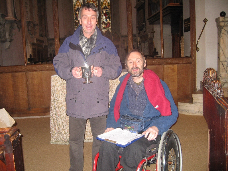 Deputy Master, Alan Marchbank, announced his pleasure in being able to persuade six teams to enter the competition this year. In fact, he said many things, including, “How marvellous to travel 70 miles and be greeted with a steaming hot mug of coffee in a nice warm hall” – or words to that effect. In fact, Thatcham turned out to be the perfect venue for the striking contest in the morning and the afternoon meeting. Despite the local ringers having to be on duty all day, Thatcham was particularly bountiful in the tea department: I can't remember having been so pampered before on one of these occasions. The competition started on the stroke of 10.00 by St Mary's clock and kept to time throughout the ringing. The judges, Chris Bulleid from Pattishall and Martin Lazell from Kingston on Thames, took about 40 minutes deliberating over the outcome: six competent branch teams obviously required extra thought! Both judges marked the faults and then combined their results, dividing the total. They marked half a point for a clip and one point for a more serious error. They were agreed about the order of all the teams. They suspected that Thatcham wasn't the easiest tower to ring as a 10 and they certainly aren't the easiest to hear inside the tower. The small, light bells are difficult to hear among the big bells. They said of Banbury that it was never easy to ring first as they had to set the standard.