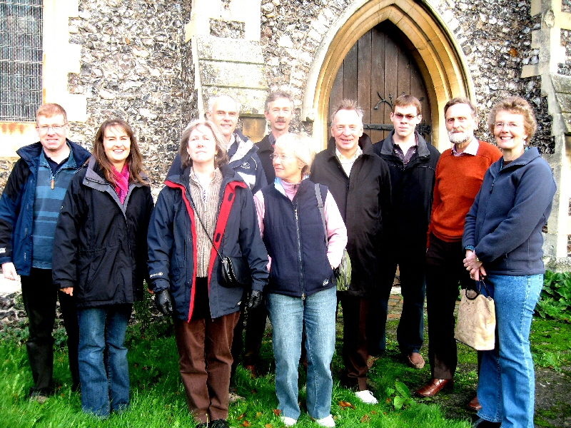 Ringers Treble front row R.anticlockwise. Treble Nick Read 2. John Marchbank 3. Roy Keeves 4. Charles Knight 5. Jonathan Griggs 6. Doug Hird 7. Alan Marchbank 8. David Phillipson (C) Team 2. EBSB